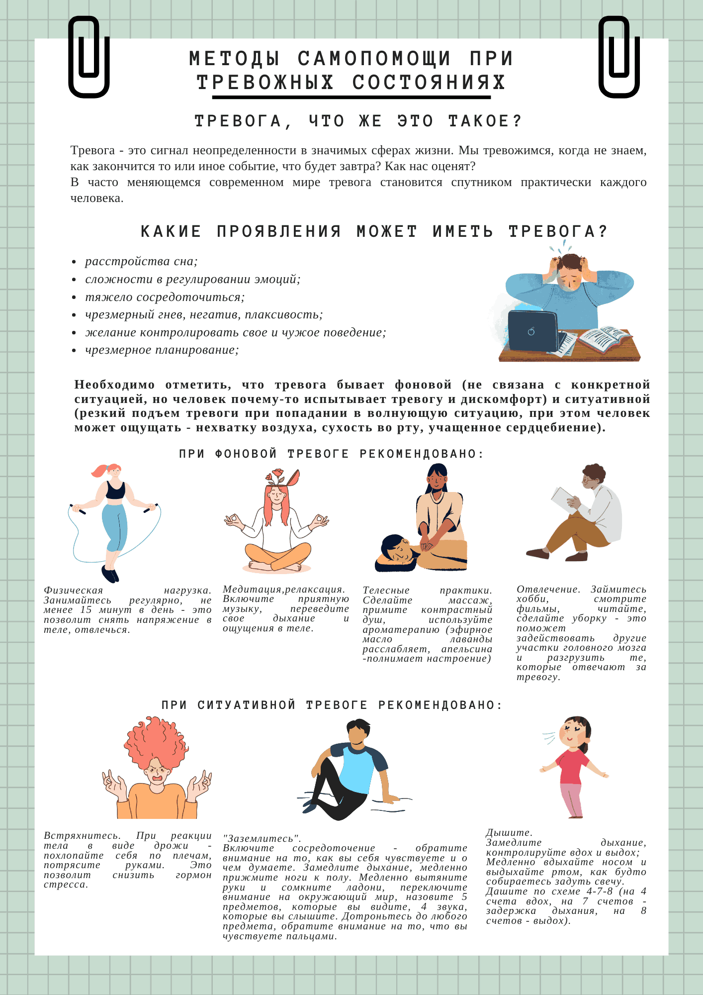 • Признаки стресса узнаваемы: потливость, бессонница, ощущение подавленности, повышенное кровяное давление и т. д. Наблюдай за собой.