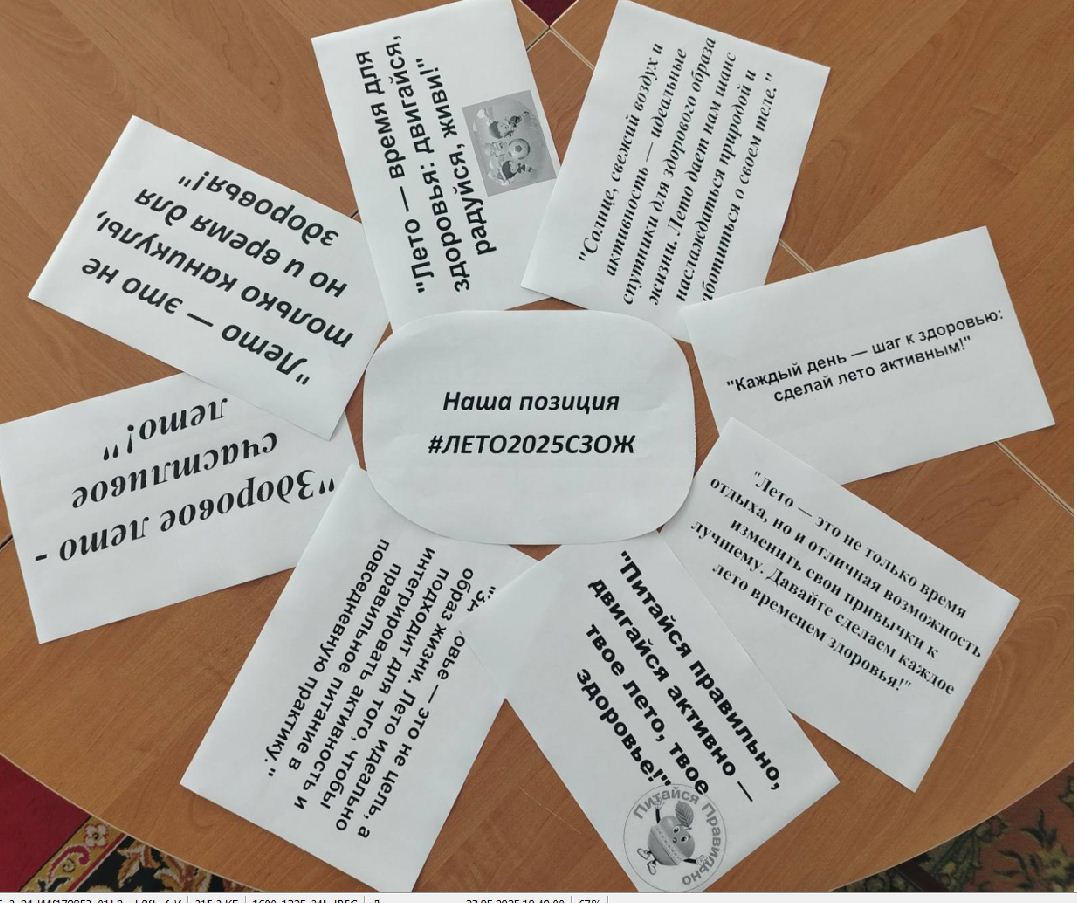 22.05.2025Утверждающим выдался денек в учреждениях образования области в четверг под девизом «Наша позиция #ЛЕТО2025СЗОЖ». Участникам представилась возможность высказать мнение о соблюдении здорового образа жизни в период летних каникул и разместить его в сети Instagram под хэштегом #ЛЕТО2025СЗОЖ.