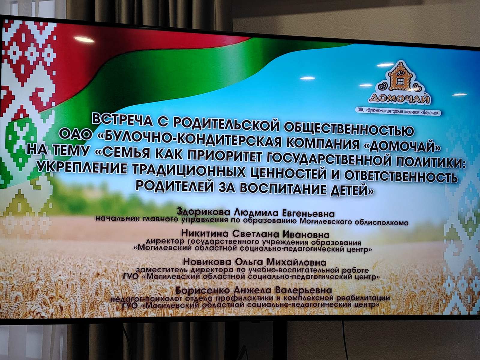 21 ноября 2025 года состоялась встреча Здориковой Людмилы Евгеньевны, начальника главного управления по образованию Могилевского облисполкома, с родительской общественностью ОАО «Булочно-кондитерской компании «Домочай» на тему «Семья как приоритет государственной политики: укрепление традиционных ценностей и ответственность родителей за воспитание детей»